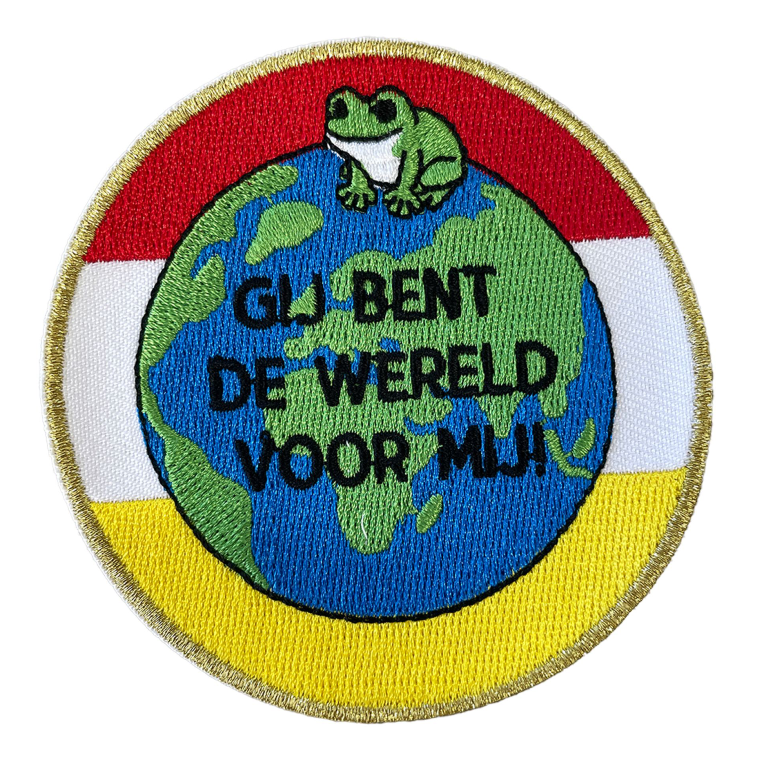 Het Oeteldonk embleem Gij Bent De Wereld Voor Mij is gemaakt van hoogwaardig borduurwerk en afgewerkt met een stevige strijklaag. Je bevestigt het eenvoudig met een strijkijzer op je kiel, jas of tas. Voor extra zekerheid en langdurig draagplezier kun je het embleem ook gedeeltelijk vastnaaien, zodat het goed blijft zitten tijdens de drukte van carnaval.